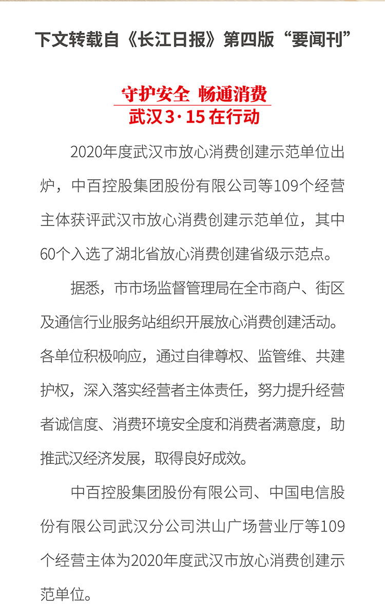 熱烈祝賀澳華裝飾被評為"武漢市放心消費…
