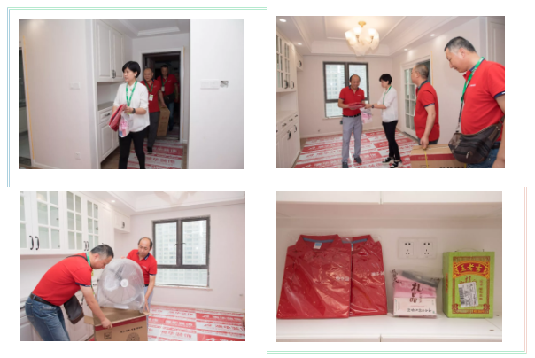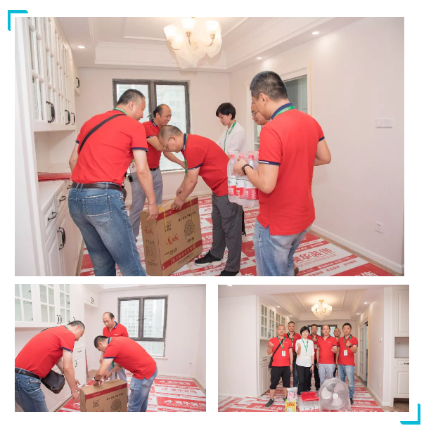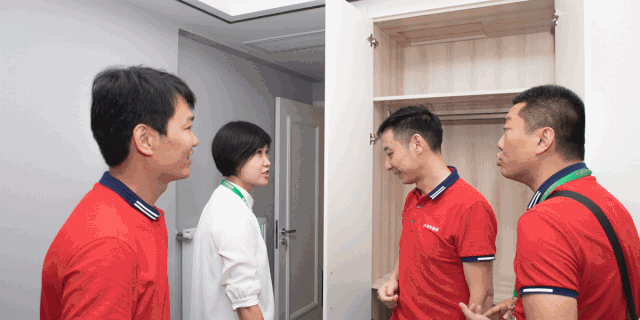 慰問工人之余,巡檢小組也沒有忘記認真的檢查,對柜門安裝是否到位、乳膠漆是否合格等進行了詳盡的檢查。同時,對于在木作安裝中出現的一些問題,巡檢小組也與一線工人們進行了認真的討論。?