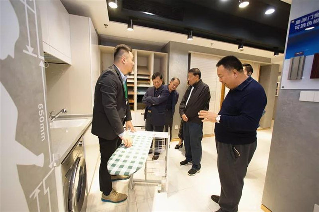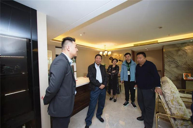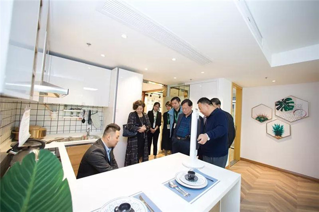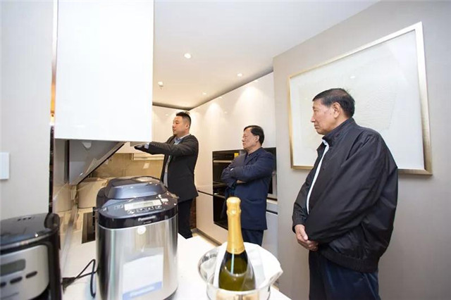 ▲ 眾領導參觀北歐風格樣板間,周總對產品亮點講解及演示。