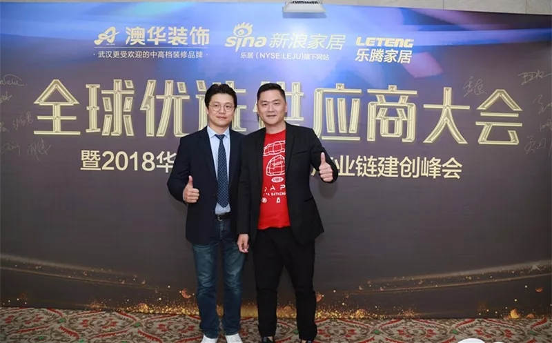▲ 武漢建筑裝飾協(xié)會名譽會長郭偉、澳華裝飾總經(jīng)理吳亮合影