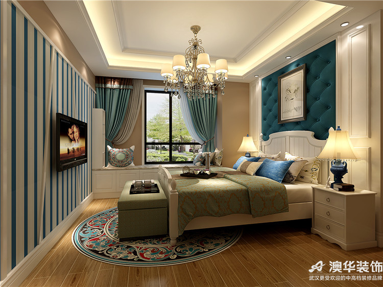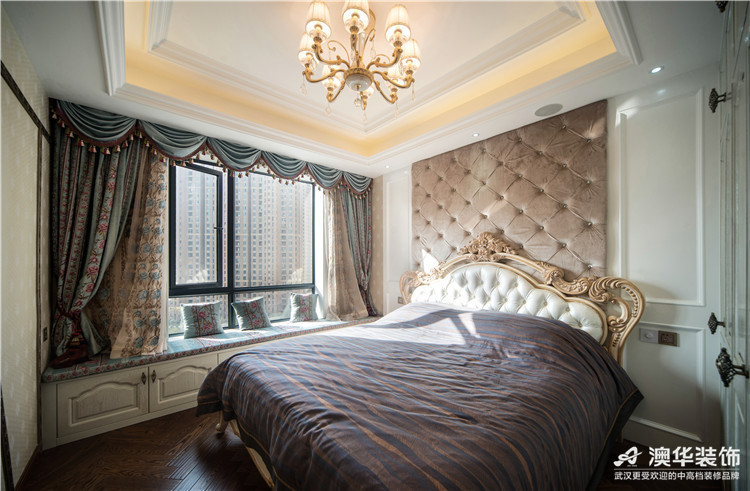 主臥飄窗設計讓空間多出了一個休閑區(qū)和收納區(qū),低矮的窗臺不僅能讓業(yè)主享受充足的自然光線,還可以坐攬東湖美景。