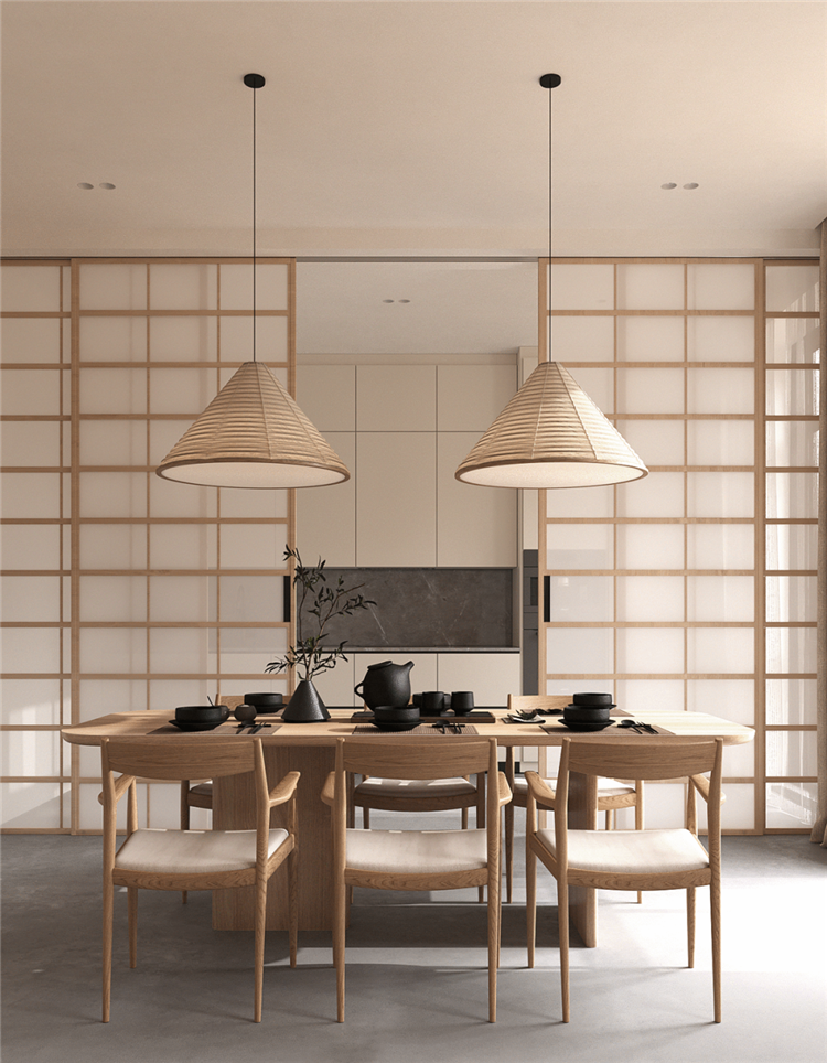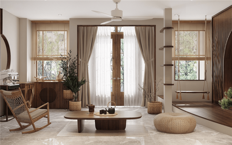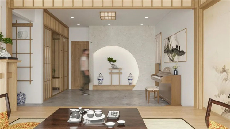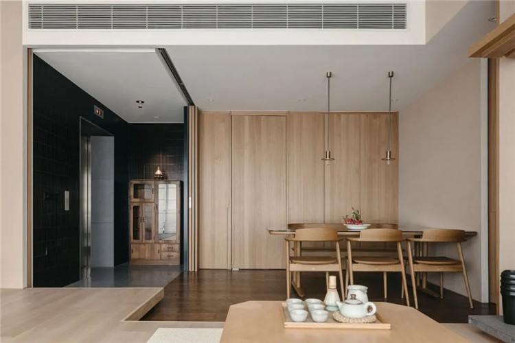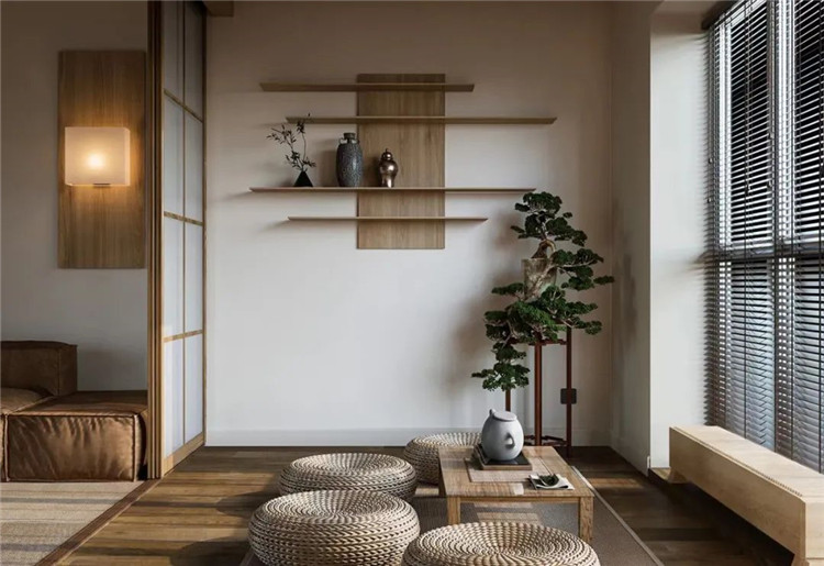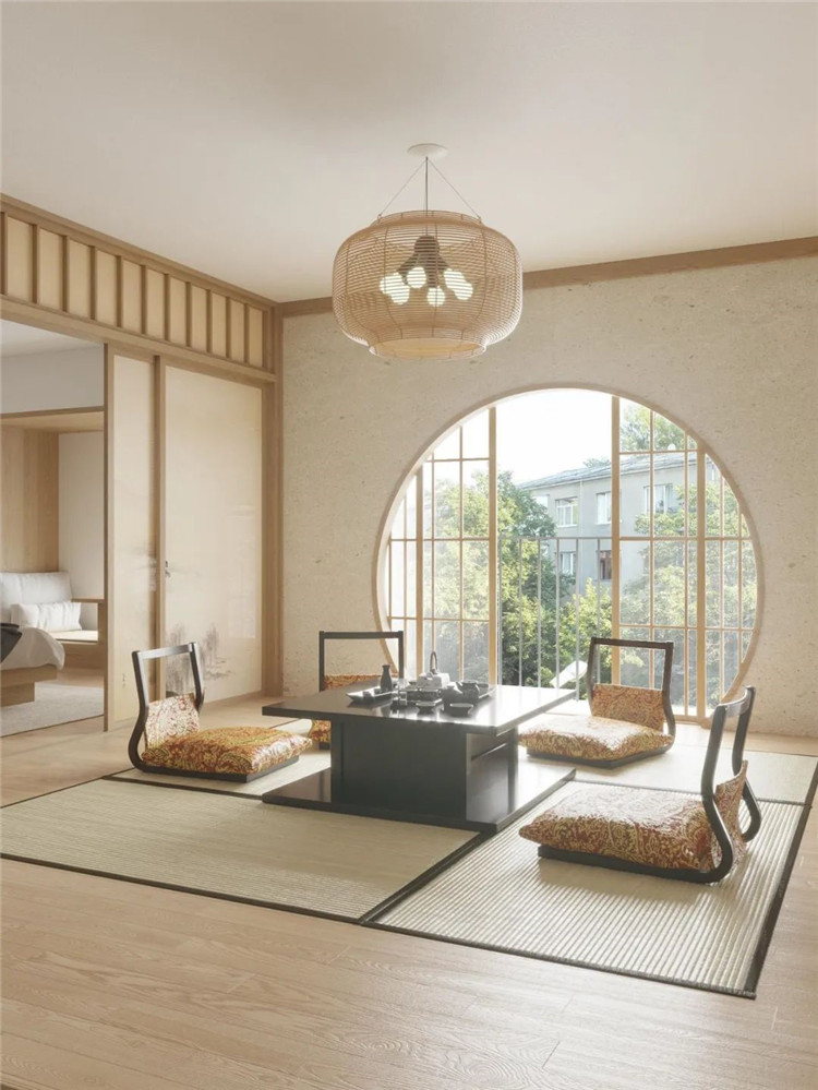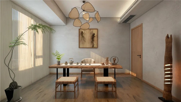 可以使用竹、木、藤等材質,家具的高度可以適量降低,營造室內的視野寬闊感的同時,也不要忘記在茶席附近預留電線插頭,方便煮茶。