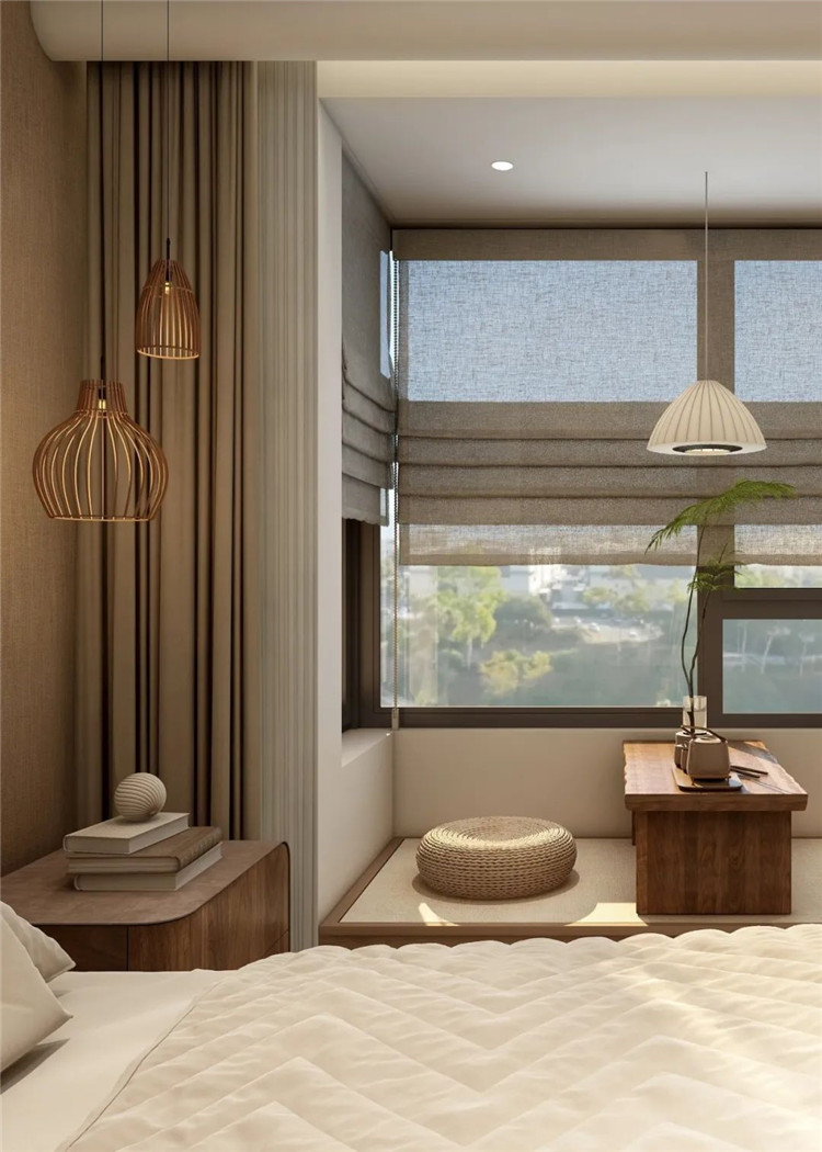 因地制宜,小小的飄窗也可以是一個小小的茶室。只需要擺上一張小桌、一套茶具、幾個軟墊即可打造出一個別有禪意的品茶區域。