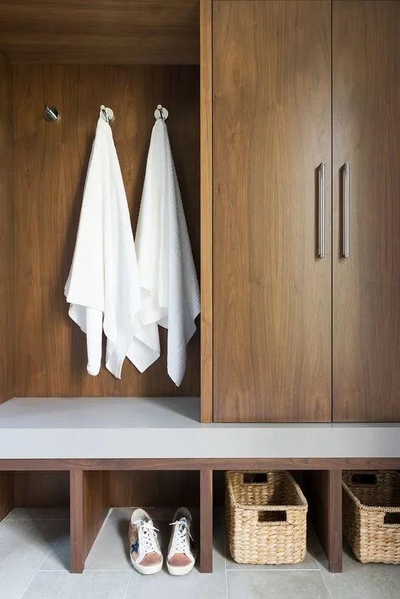 玄關加入卡座,不僅便于在進出門時輕松完成換鞋過程,尤其是對于有老人或者孩子的家庭,安全便捷,同時也增加了門廳空間的儲物功能。而鞋柜和卡座的款式裝飾與材料質(zhì)感,要與整體協(xié)調(diào)統(tǒng)一,保持視覺上的整潔。