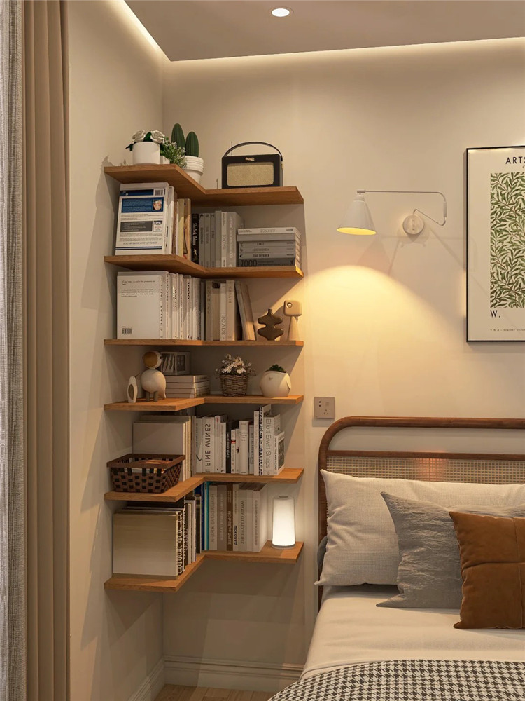 無論是客廳、餐廳、臥室亦或是陽臺,都可以在轉角區域安裝一些隔板,整體錯落有致,別有生趣。