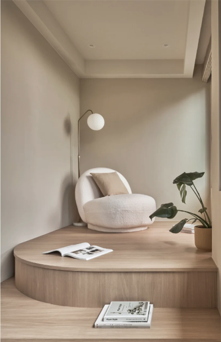 或者將轉角做成弧形,結合端景設計,讓原本毫無存在感的角落,變成心里的白月光。