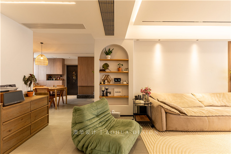 當然也可以選擇將茶幾嵌入沙發之間,留出寬敞的過道,供家人隨意活動。
