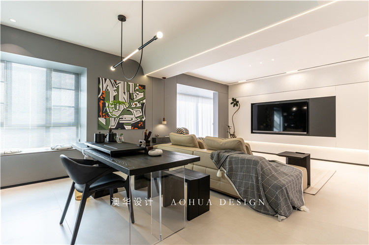 當客廳的互動功能凸顯,茶幾其實也不再是必須,可以用長桌來替代。