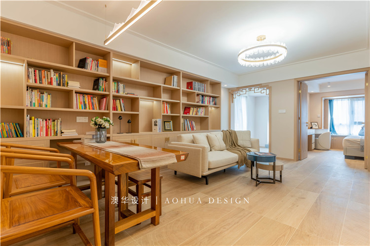 如果客廳面積較大,可以選擇一面墻或者角落來設置書架和閱讀區。
