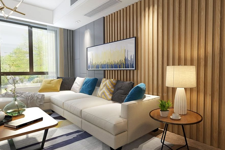 柵欄式的木質背景墻搭配上水泥墻面,兩種自然感元素的碰撞讓家居空間更具設計美感。