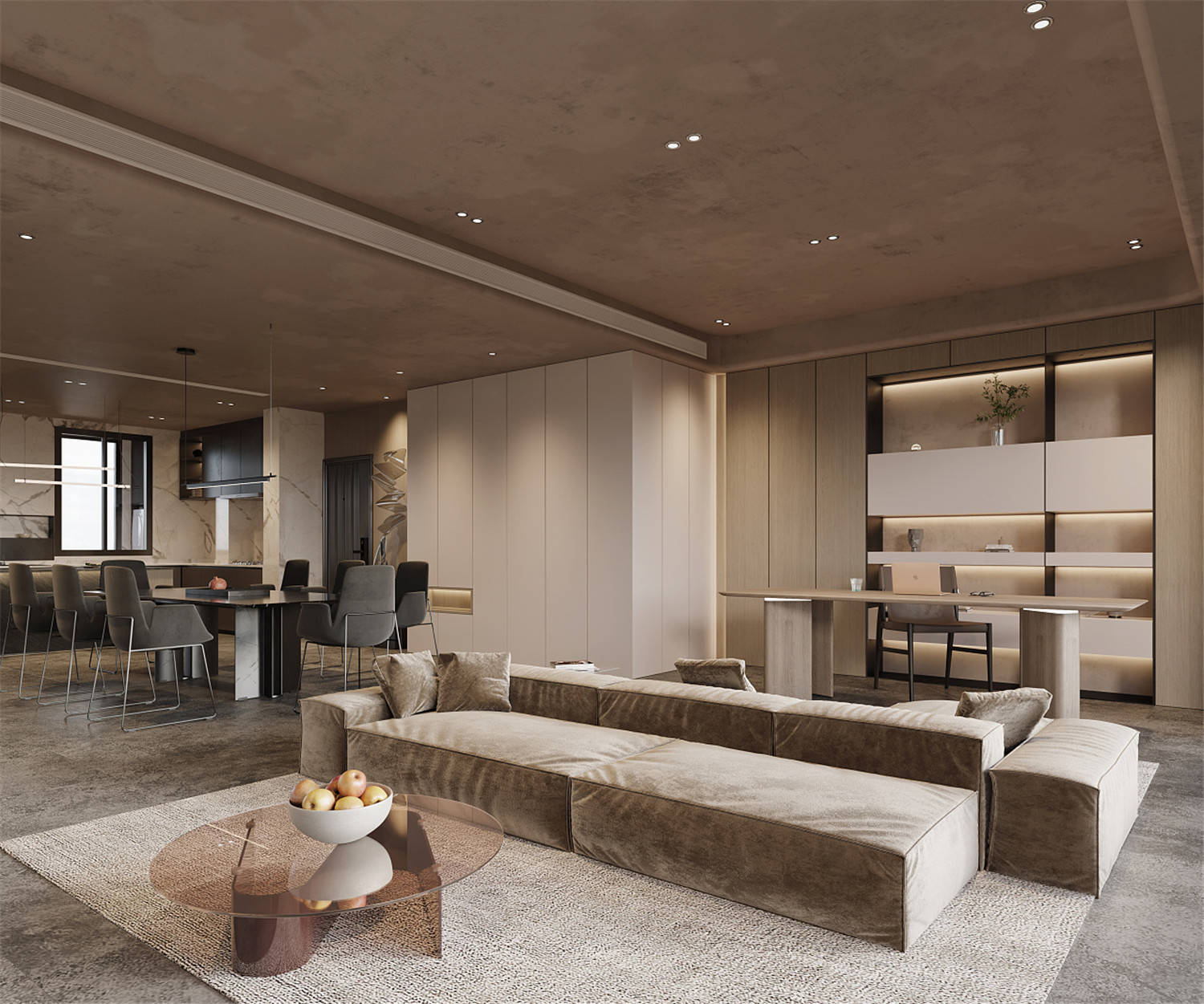 該別墅坐落為一位退休老人所有,坐落于相對比較成熟的商圈地段中。而業主希望設計師能夠將別墅空間進行合理的規劃設計,在滿足自己與家人使用需求的前提下,追求一份靜謐、舒適的自然氣息,以便自己頤養天年。因此設計師在對該空間進行規劃設計的時候,以退休老人及其家人的需求為主設計思路,根據起居需求打造了書房、停車間等區域,以提升生活品質。