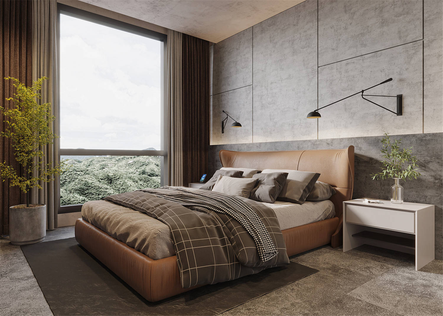 精致的浮雕設計搭配上大面積的落地窗為臥室空間籠罩上一抹淡淡的華貴美。巨型吊燈、精致的床頭燈雙燈設計則能夠滿足休憩者不同的燈光需求。