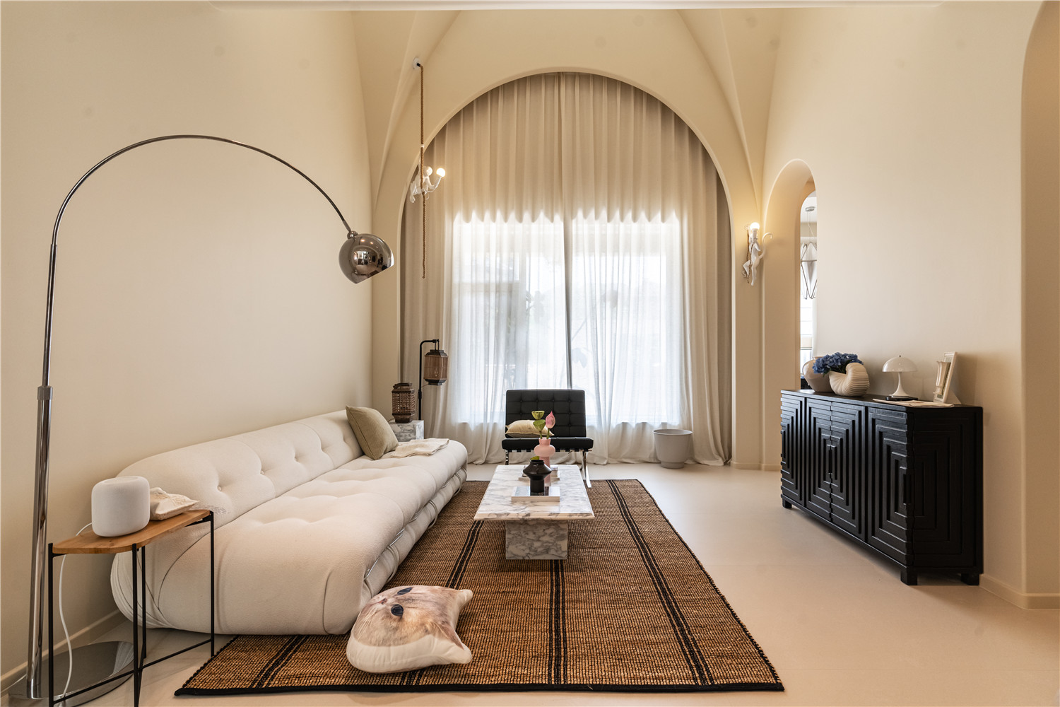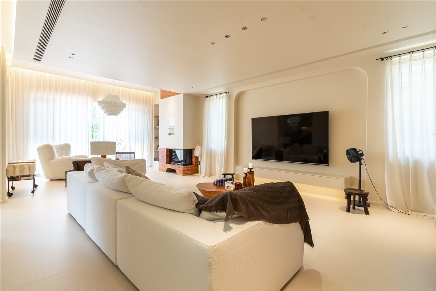 沙發和地毯都經過精心挑選,傳統美式風格低調奢華,缺點便是客廳的電視墻略微狹窄,觀看電視些許不舒適。