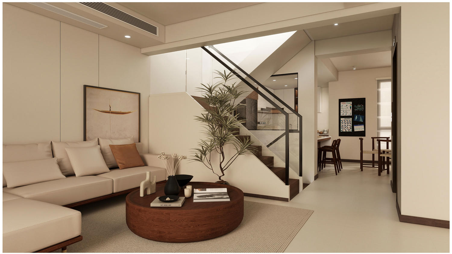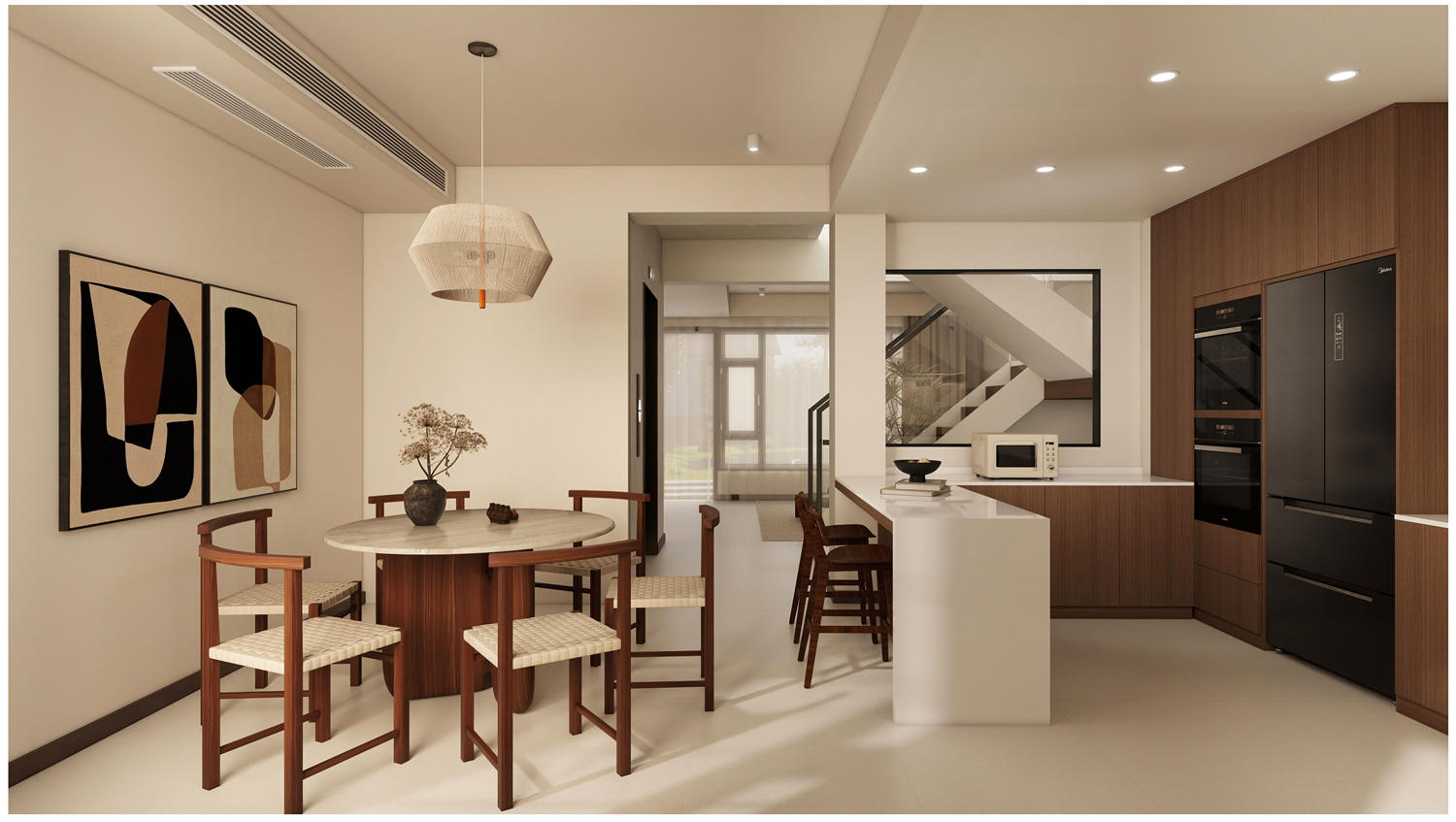 和客廳連接的餐廳雖然呈現長方形,擺放一張六人桌也是空間足夠的。餐廳舉架超級高,用餐完全不會感受到任何的壓迫感。