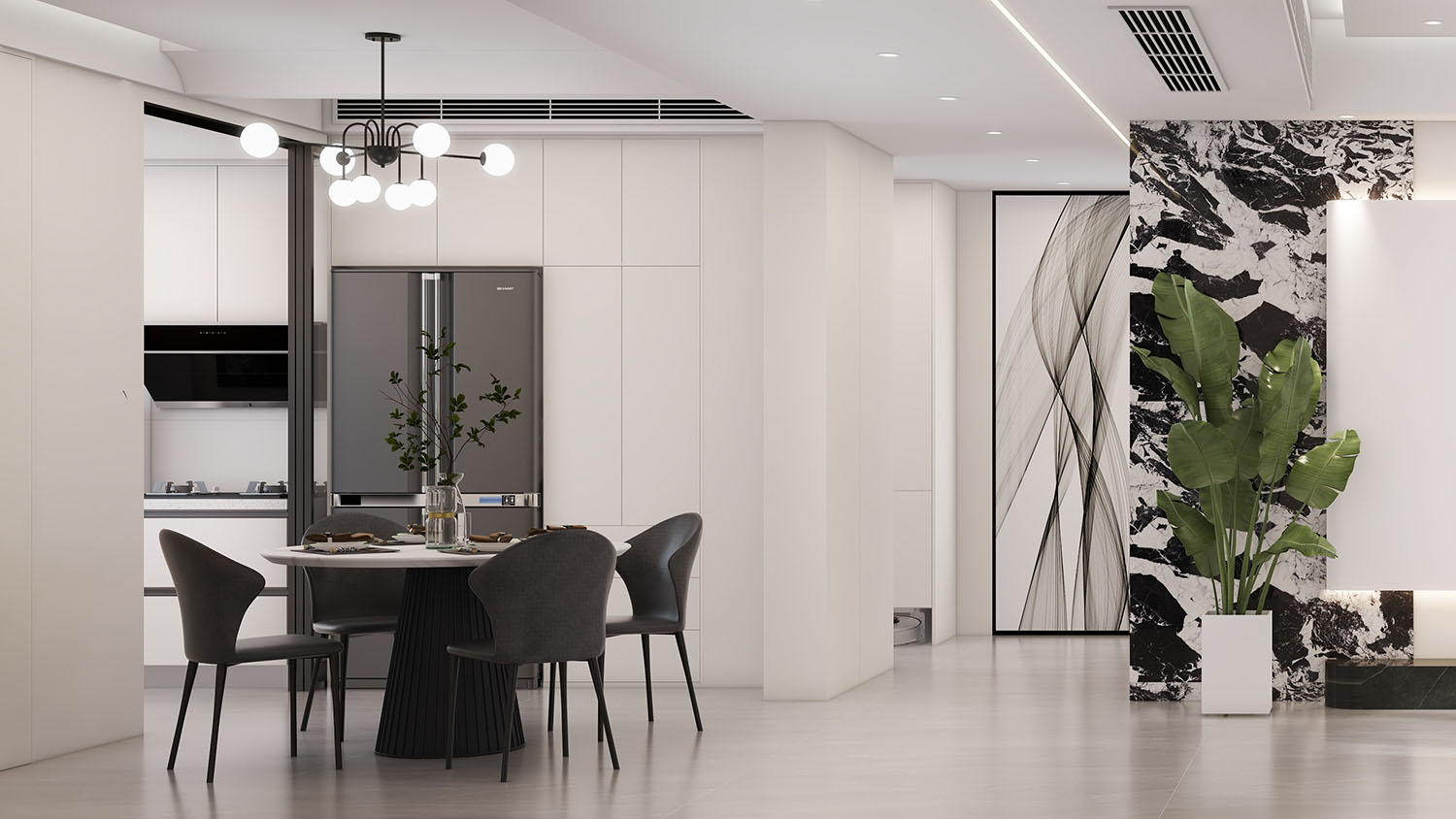 簡潔、時尚、耐看、通透,是屋主對新居的首要期待。經過深入交流,我們迅速在設計理念上達成一致,決定以隨性自然的黑白灰作為主色調,對空間布局進行精心重組,旨在擴大生活區域,讓自由無拘的氣息充盈于整個居家空間之中。