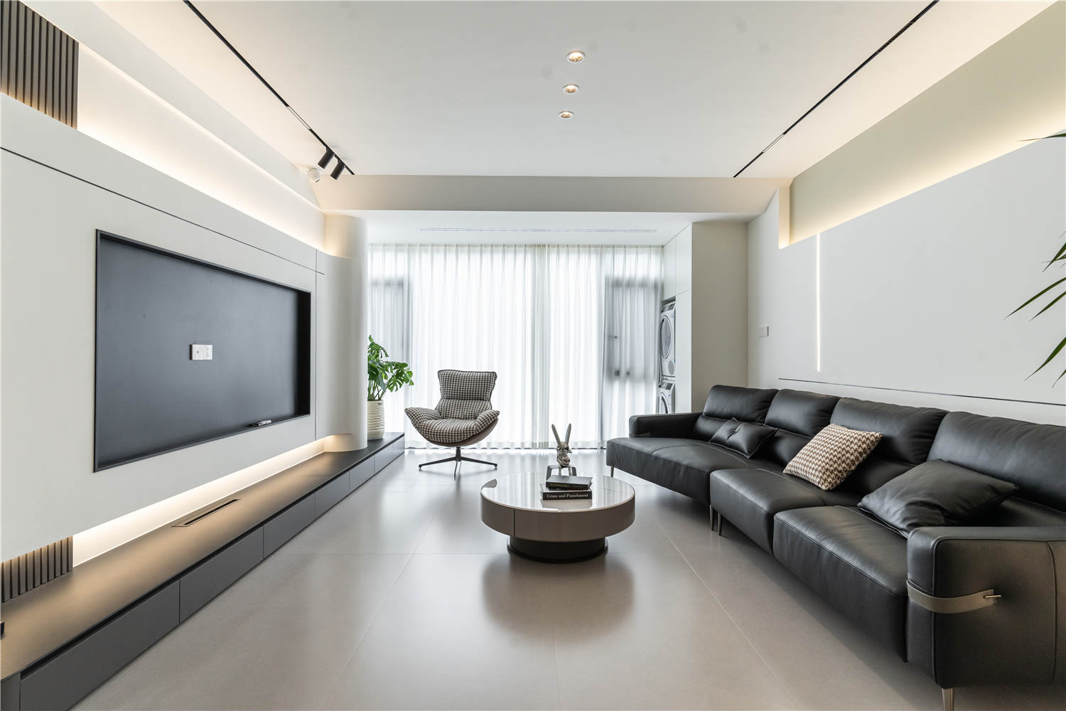在黑白灰的主色調下,客廳彌漫著一股純粹而高雅的氣息,這種色調憑借其強大的包容性和可塑性,勾勒出了一幅和諧而宜居的生活畫卷。