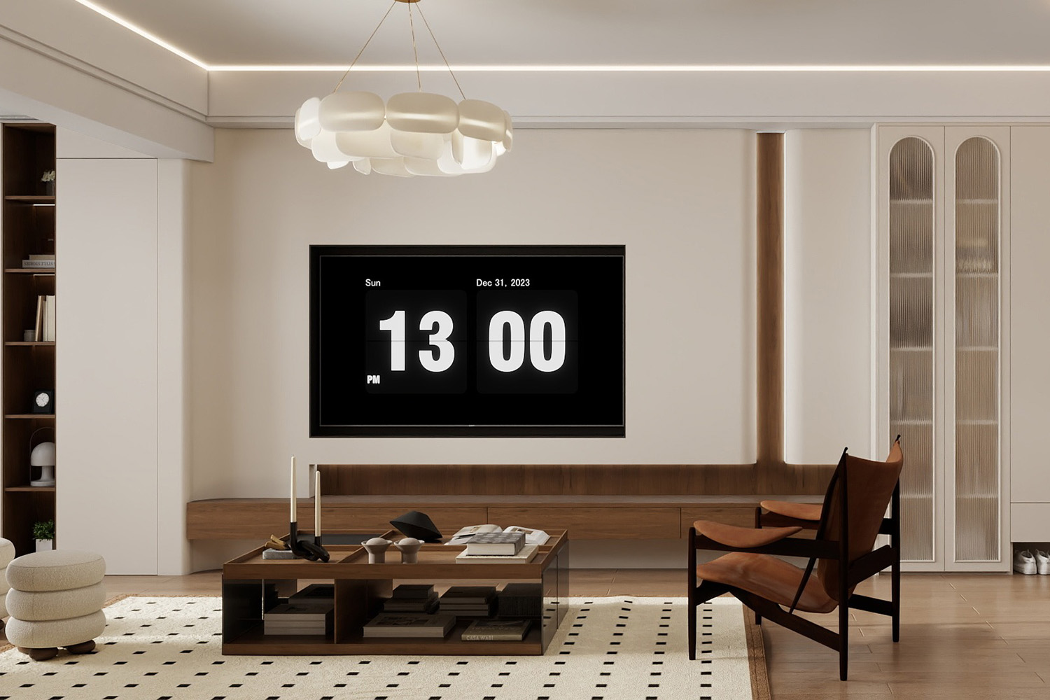 褐色與白色構成的書柜藝術感十足,搭配上簡單的圓形擺件,展示主人獨特審美與品位。