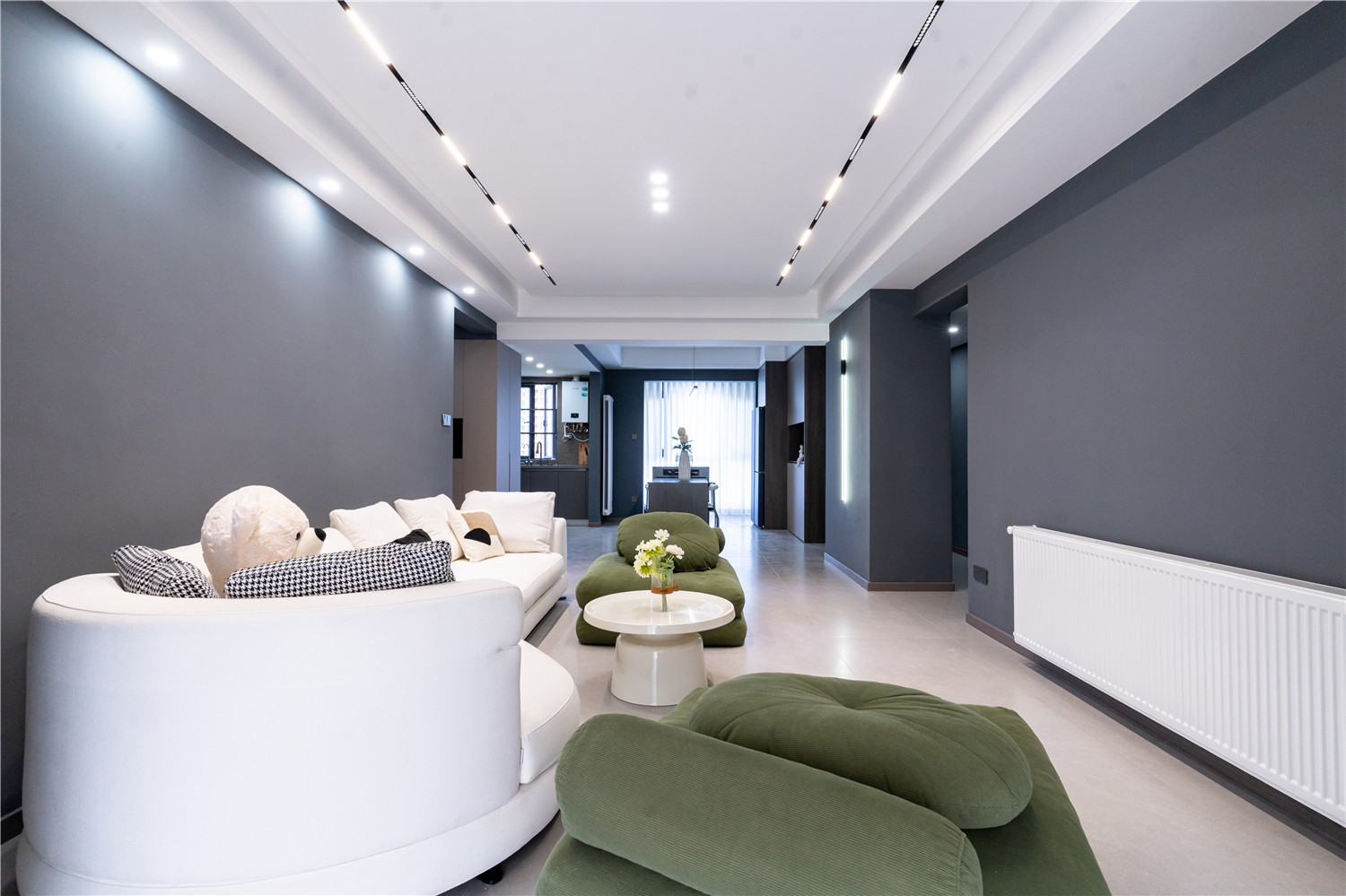 案例介紹:本案為輕奢風格三居室,男主人為企業高管,女主人對顏色有著獨特的見解,曾是美術學院的她頗愛輕奢風格,溝通時二人提出了輕奢設計的需求,對空間的收納有一定需求,室內柜面選擇整裝定做,以呈現出高品質的視覺效果。