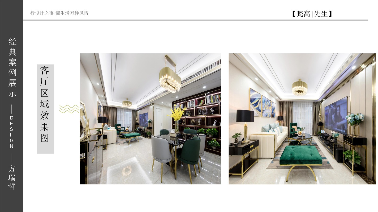 案例簡介:現(xiàn)代輕奢風借用了最為簡潔的元素來展示一種由內向外的高級格調感,強調一種內斂的獨特品味,這也是現(xiàn)代輕奢風的魅力所在。而本案例的設計師借助材料絲絨材質、大理石材質等質感元素進行空間裝飾,強調室內氛圍的輕奢優(yōu)雅感。同時,利用冷暖色系的搭配使用增添室內環(huán)境的視覺豐富感與層次感。