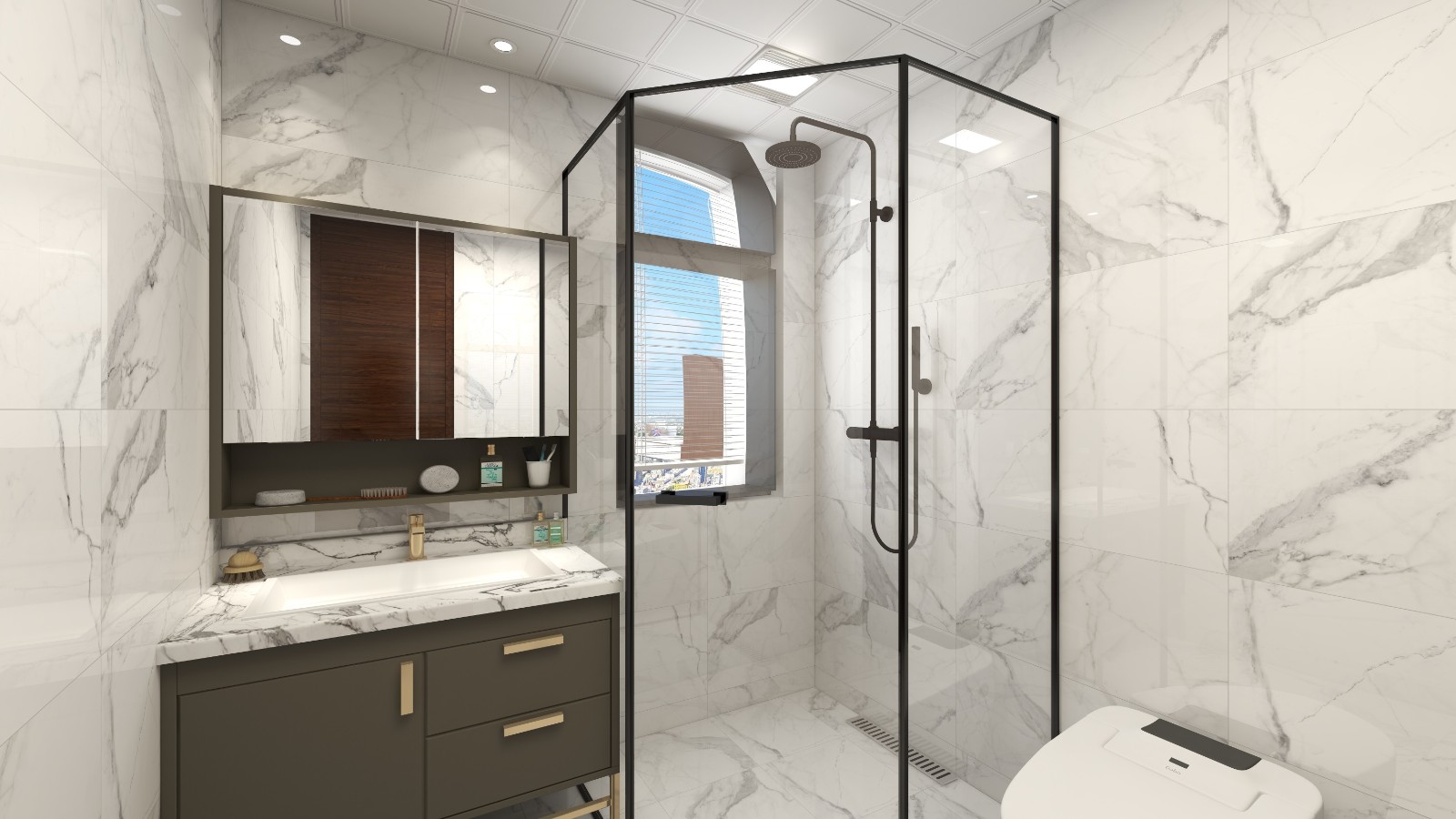 透明玻璃通透性強,既可以起到干濕分離作用又不會顯得過于生硬,黑色鑲邊處理則為空間增添結構感。