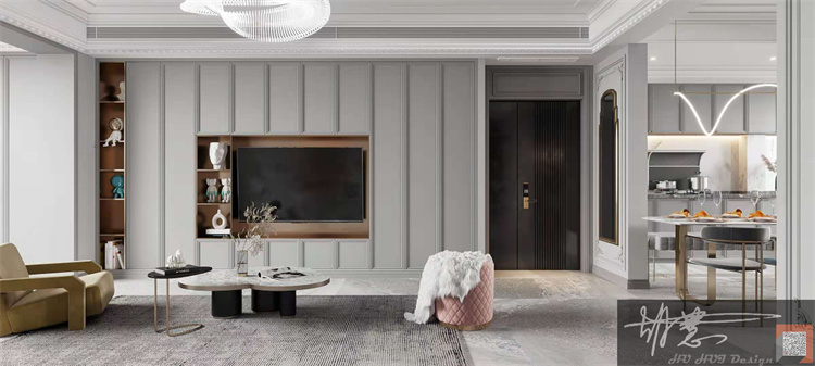案例簡介:本案的業(yè)主是一對即將結婚的年輕夫妻,同為白領的他們不喜歡過度裝飾,希望設計師能夠使用一些盡可能簡約的元素裝飾空間,以保障耐看且易于打理。設計師按照業(yè)主的喜好與想法,選擇了簡約而又不失品質感的現(xiàn)代輕奢風進行裝飾設計,利用簡潔的元素與色彩強調空間的沉穩(wěn)優(yōu)雅氣息,而細節(jié)處的設計則提升空間的高級品質感。