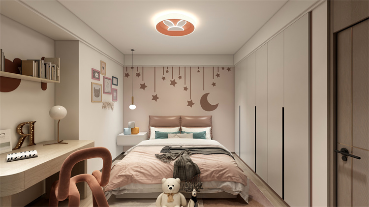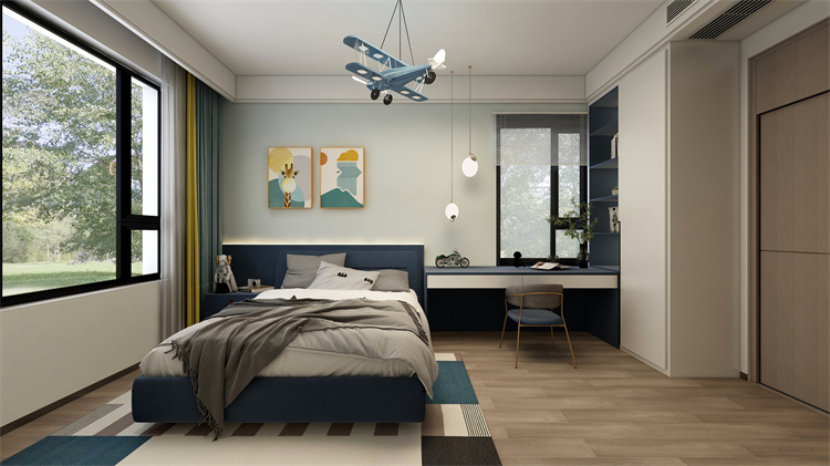 不同深度的藍(lán)色組合讓臥室區(qū)域的結(jié)構(gòu)感更加明顯,閱讀外面與衣柜的銜接處理則讓空間融合感更加強(qiáng)烈。