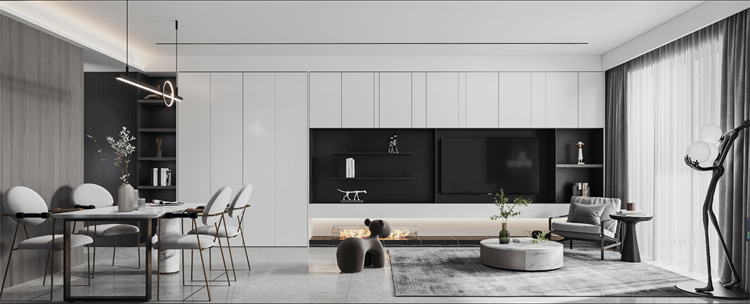 案例簡介:對于空間氣質(zhì)的表達(dá)是一門藝術(shù),一個優(yōu)秀的設(shè)計師往往能夠借助簡單的色彩組合來營造不同的氛圍感,再借助一些合理的裝飾點(diǎn)綴,打造出一所帶有獨(dú)特氣息的家居空間。本案例的設(shè)計師借助簡約的灰白配色來營造空間的個性與氣質(zhì),同時借助不同材料的質(zhì)感裝飾空間,讓整個家居空間呈現(xiàn)簡約而又不簡單的視覺效果。
