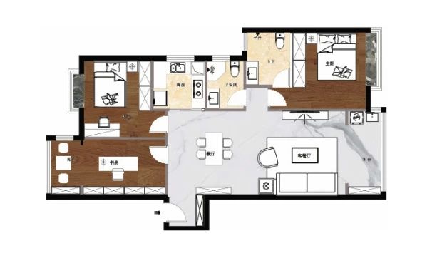 2 三臥室+一書房設置,滿足多人口家庭需求。