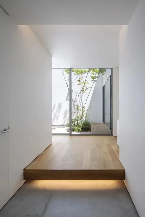 ②用不同材質(zhì)做區(qū)分:做不到標(biāo)準(zhǔn)的下沉式設(shè)計(jì),我們可以通過(guò)不同材質(zhì)的拼接,讓室內(nèi)外做出1-5cm左右的高度差,最常見(jiàn)的有玄關(guān)鋪瓷磚+室內(nèi)木地板。