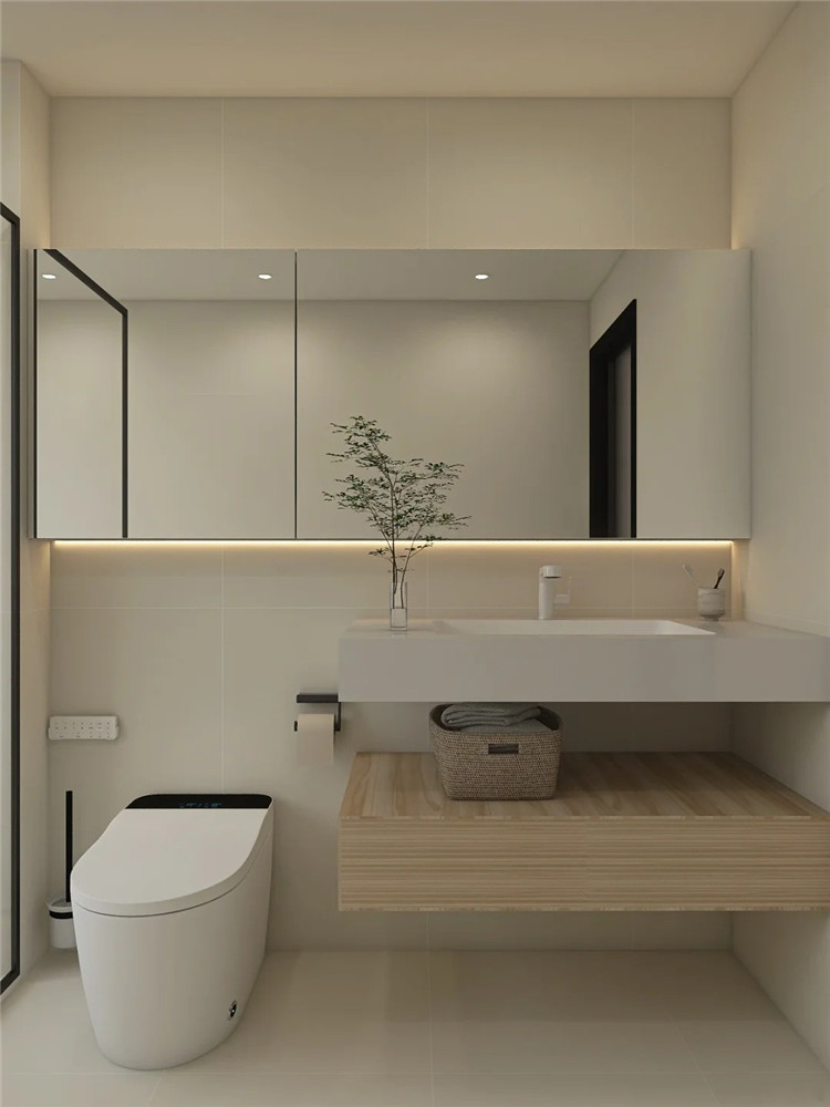 衛生間更注重的是實用性,在滿足實用性的基礎上進行一些個性化的搭配,一般以簡潔大氣為主,色彩和種類不要超過3種,反之會引起視覺上的審美疲勞,破壞這種色彩間的有機平衡。