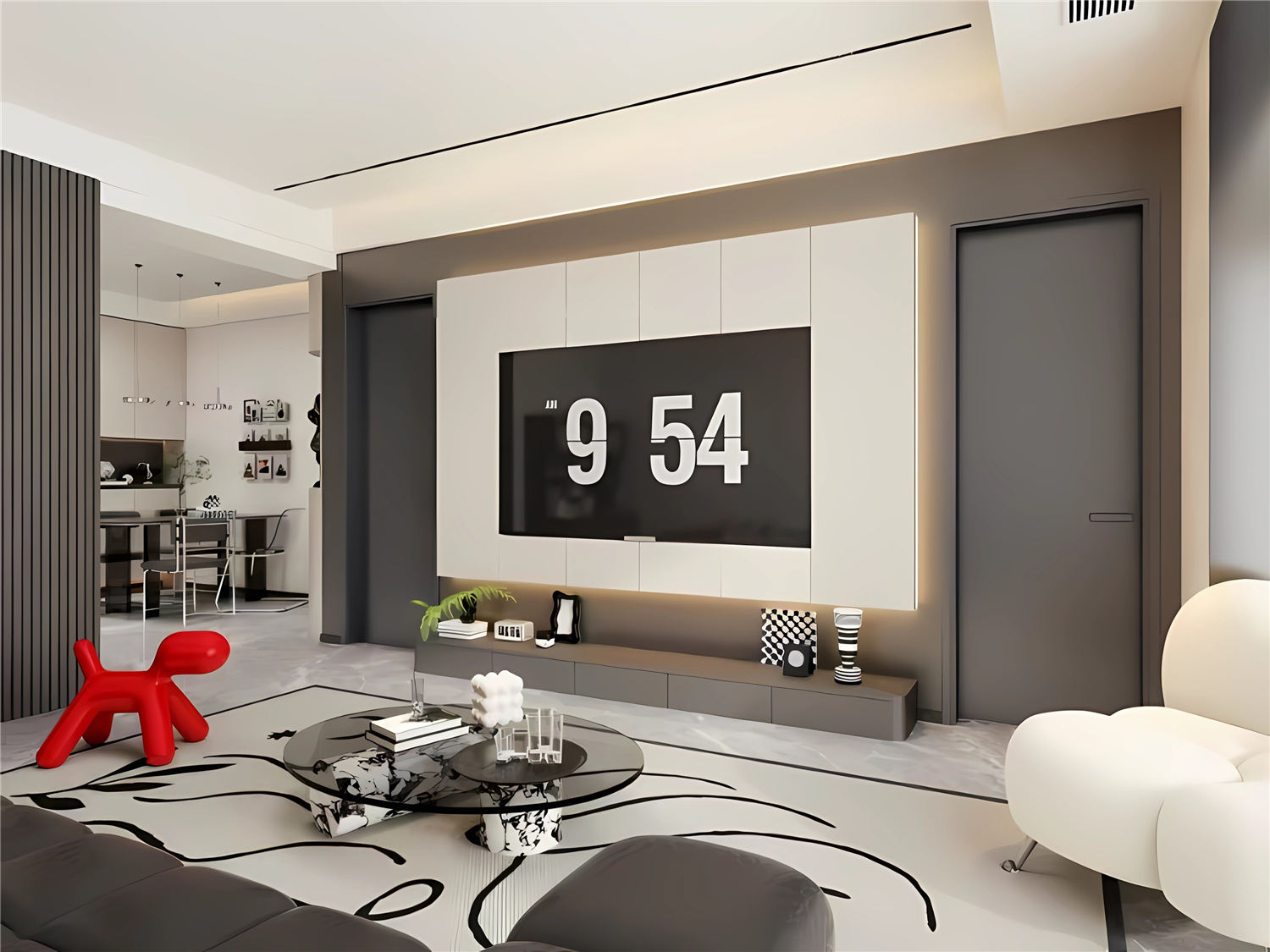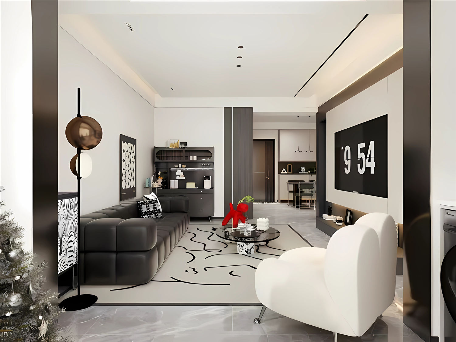 案例簡介:本案例的業主喜歡與眾不同的東西,因此他希望自己的家也能夠帶有濃烈的個人色彩。而由于業主平時工作比較忙碌,并沒有過多的時間用于家居打理,因此設計師選用了現代簡約風進行裝飾,同時借助不同的線條組合搭配來突出空間的個性感與獨特感。而色彩的選擇上,設計師則選用了反差感較大的不同顏色進行搭配,通過色彩的對比來突出空間的特有氣質。