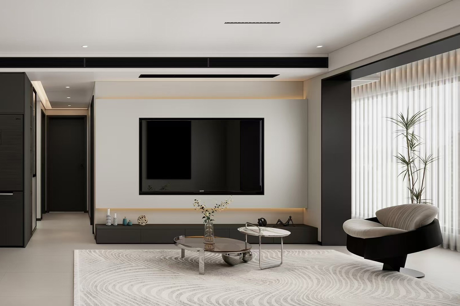 1 通體背景柜處理,解決儲物量和儲物分類。