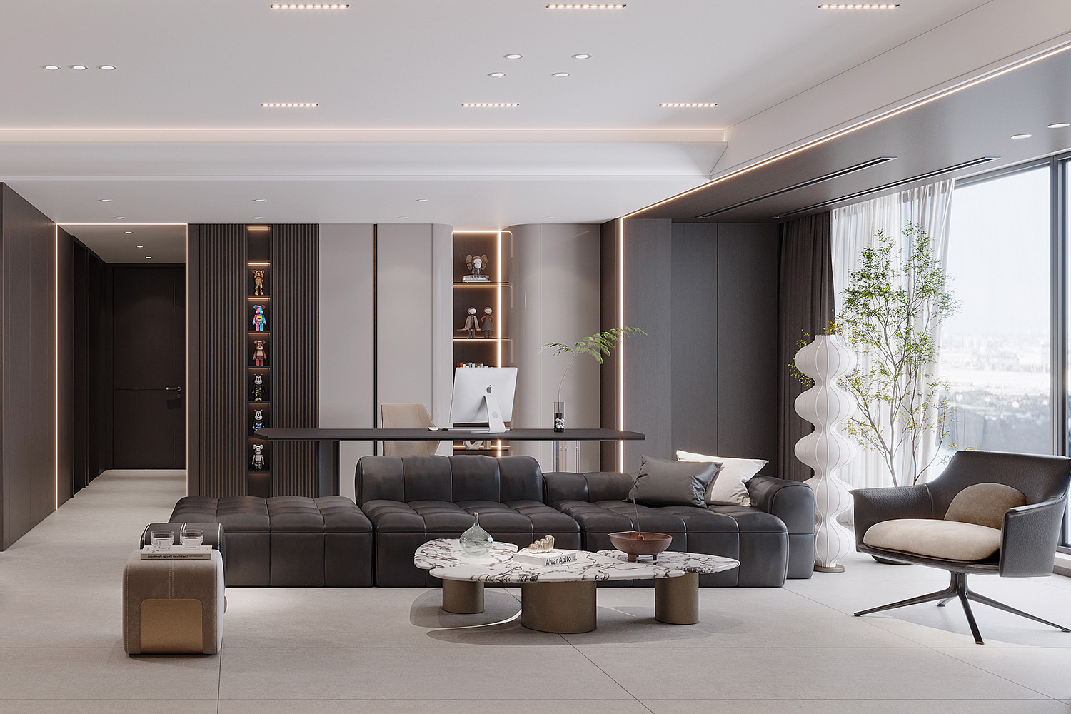 案例簡介:本案例是一個坐落于喧囂都市的大戶型別墅,業(yè)主希望設計師能夠幫助自己打造出一個高品質的格調家居,設計師結合業(yè)主的審美與實際情況為其打造了一個集高雅顏值與實用相融合的現(xiàn)代輕奢住宅,借助各種高品質的材料來提升空間質感,同時借助線條的律動來增添空間的時尚個性氛圍。